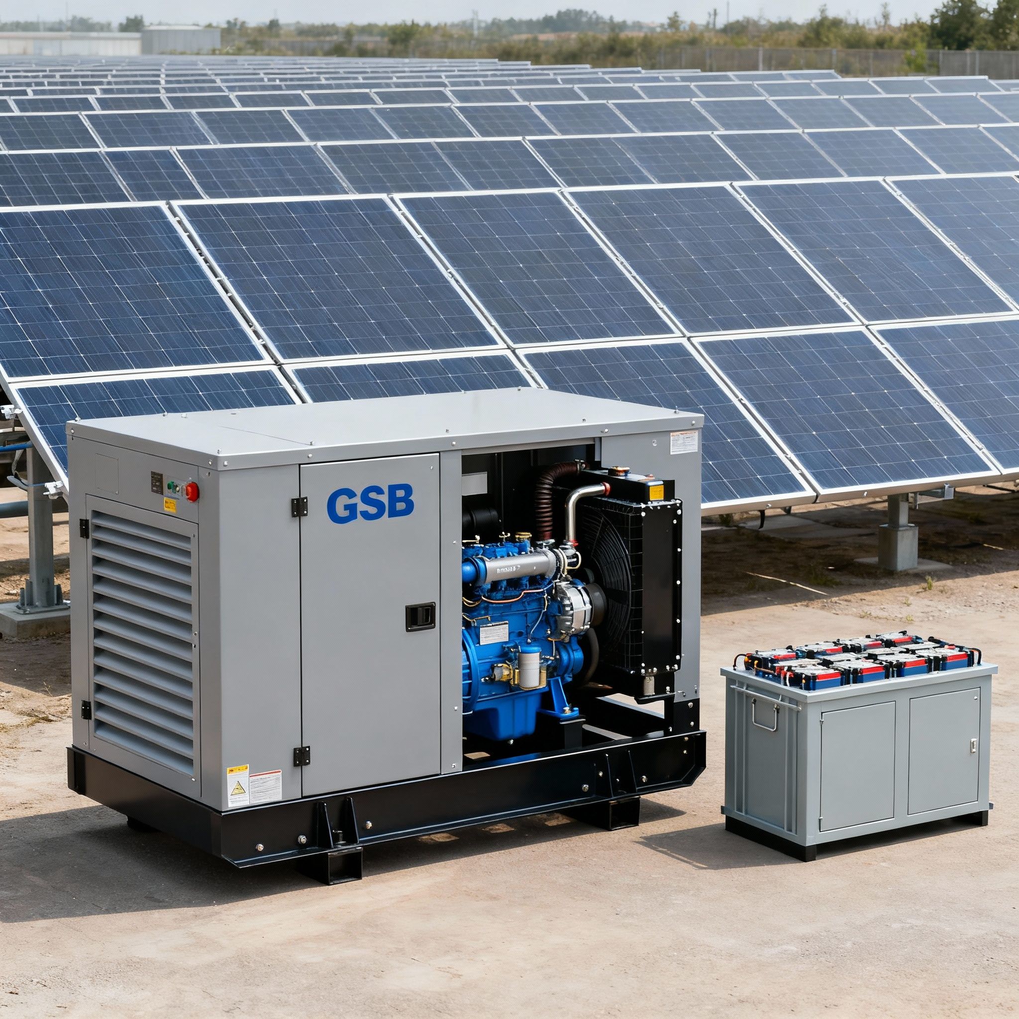 Our GSB series combines proven diesel generator reliability with renewable energy efficiency. These systems automatically prioritize solar and battery power, only engaging the generator when necessary, ensuring maximum fuel efficiency.